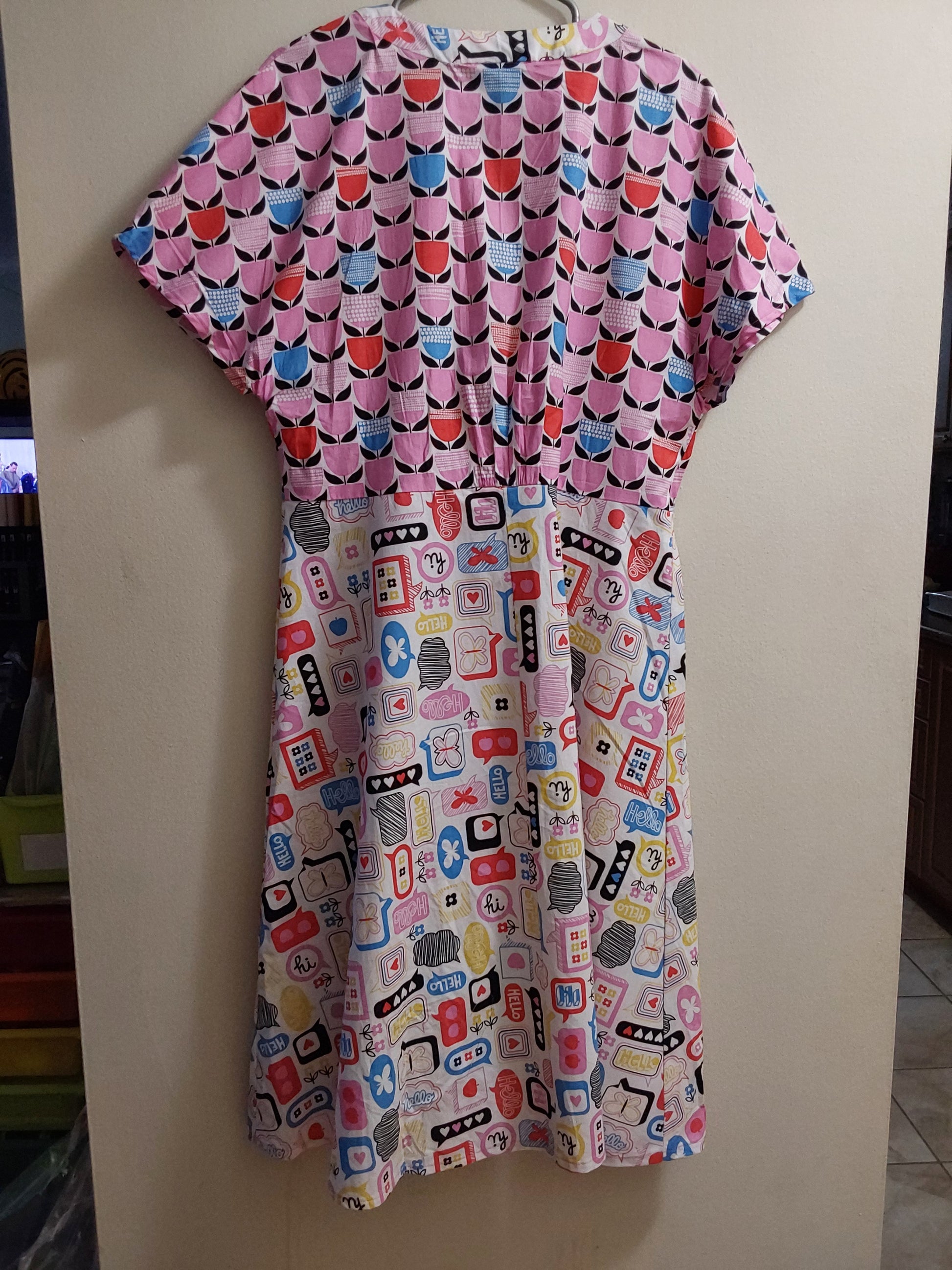 I was hit one day with a wave of fun sillyness when I came across these fabrics at the store. I think this dress is a prime example of the love of making things, not for yourself, but just to make them.