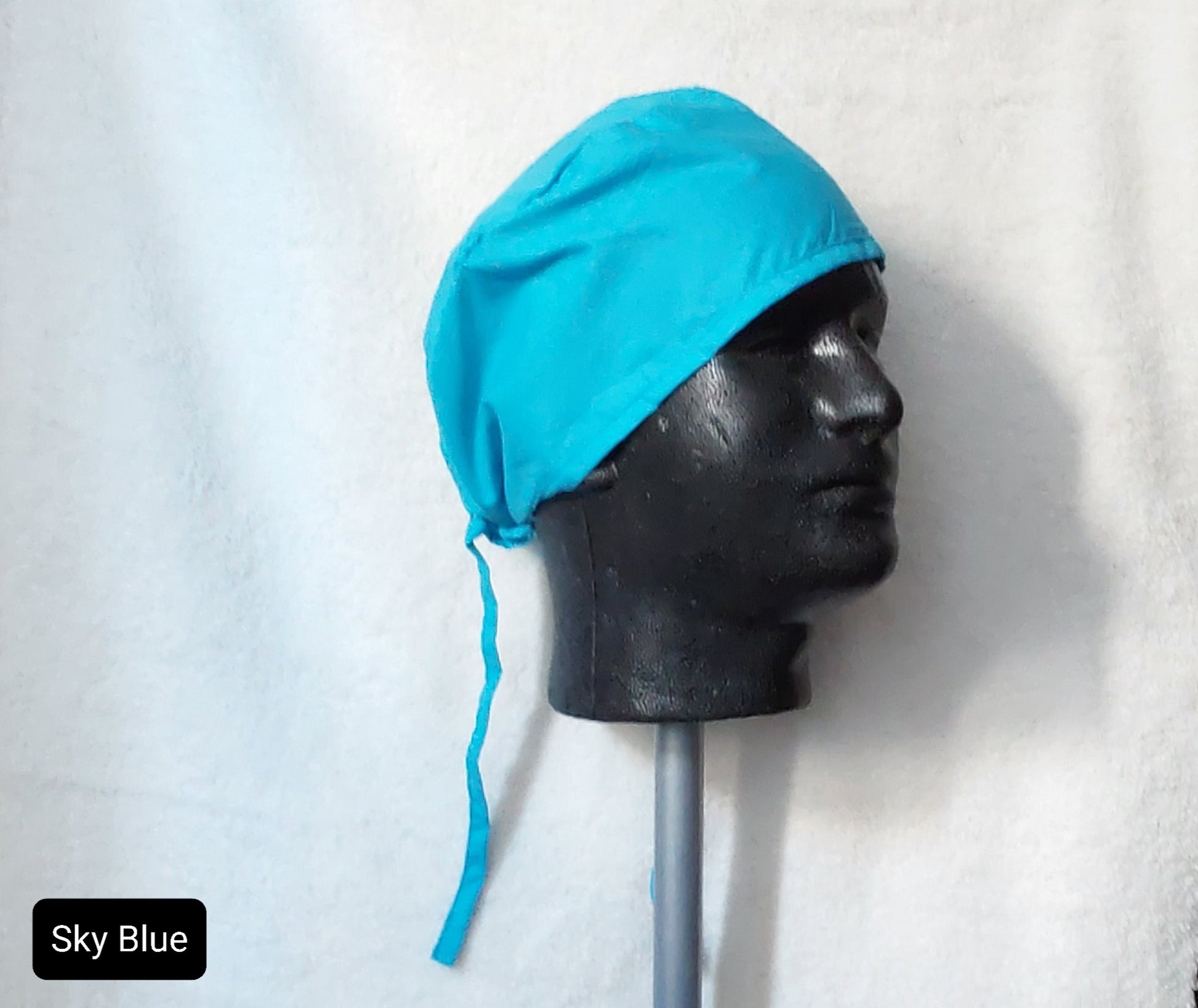 Sizing: We can currently offer surgeon's caps in sizes medium, large and extra-large. The large and extra-large caps are made with space for a pony-tail or bun.