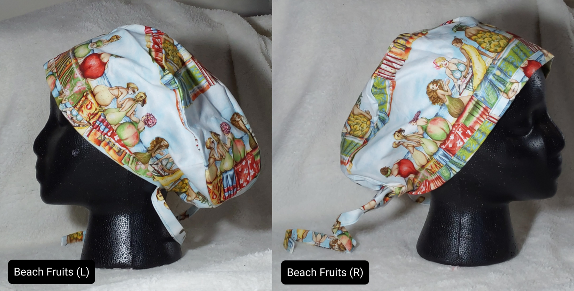 Sizing: We can currently offer surgeon's caps in sizes small, large and extra-large. The large and extra-large caps are made with space for a pony-tail or bun.